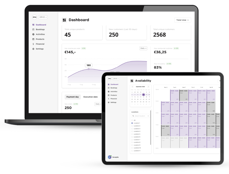 With DRIVE, you can rent/sell products and activities in a personalised brand style through a user-friendly booking system on your own website. You can make your products rentable in just a few minutes!